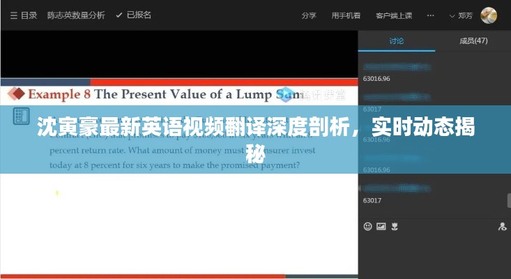 沈寅豪作为一个特定的个体,其关于英语视频翻译的最新动态或实时内容,主要涉及到他在英语翻译领域的最新研究成果、实时英语视频的教学与翻译实践,以及可能发布的最新英语翻译视频资料,这里,“最新”强调的是信息的时效性和新颖性,而“实时英语视频翻译”则涵盖了现场或即时翻译的情景,包括但不限于教学、会议、文化交流等场景中的英语翻译实践,对其进行深度剖析,旨在理解其最新研究动态、实践方法以及可能的发展趋势。
