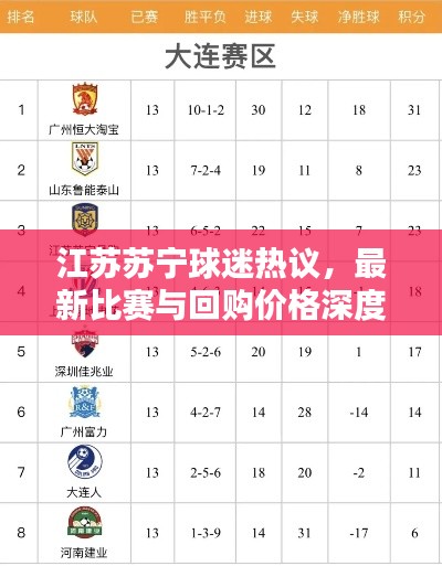 江苏苏宁足球队作为中超联赛的劲旅,拥有广泛的球迷群体和关注者,其最新比赛无疑是广大球迷关注的焦点,随着赛程的推进,球队的表现以及比赛结果都牵动着每一个球迷的心弦,而与此相关的回购价格计算,则涉及到赛事运营、球员转会等背后的商业操作,对于球迷和关注者来说,同样具有重要意义。