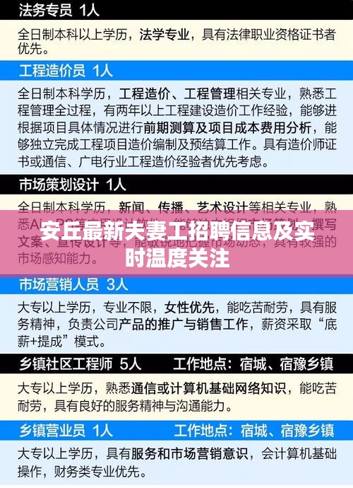 针对最新夫妻工招聘和安丘实时温度这两个关键词组合,公众和企业应当保持高度关注并理性对待,应聘者需要谨慎选择适合自己的岗位,关注招聘信息的真实性和合法性;居民和务工人员需要关注当地的实时天气状况,做好生活和工作的安排,企业和相关部门也应当加强信息发布和监管力度,提高信息透明度和准确性,在实施策略上可以采取以下措施:企业可以与当地气象部门合作发布实时天气预报信息;政府部门可以加强对招聘信息的审核和管理;社会组织可以开展相关宣传教育活动提高公众的安全意识和防范能力。
