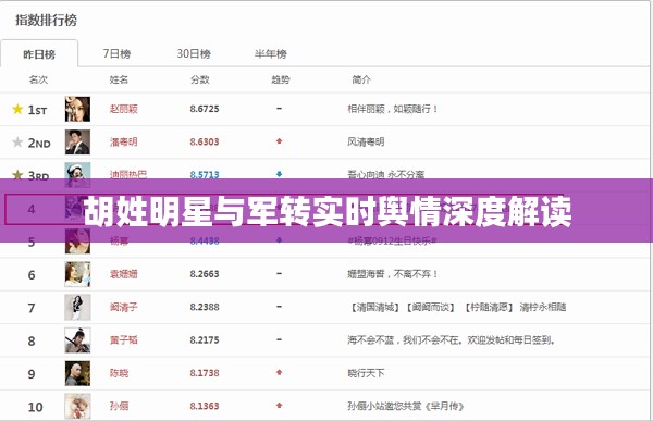 针对最新胡姓明星与军转实时舆情的关联,我们可以从以下几个方面进行落实: