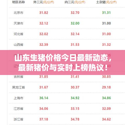山东作为我国的重要生猪养殖省份之一,其生猪价格动态对于养殖业、畜牧业乃至农业产业链都具有举足轻重的地位,今日猪价指的是在某个特定时间点,通常是即时或近期的生猪市场价格,而“最新”和“实时上榜”则强调了信息的更新频率和及时性,意味着所提供的价格信息是最新发布的,能够反映当前市场状况。“山东生猪价格今日猪价最新跟实时上榜”这一关键词组合,主要指的是山东省在当下时间点的最新生猪市场报价,并且这些报价信息是实时更新、及时发布的。