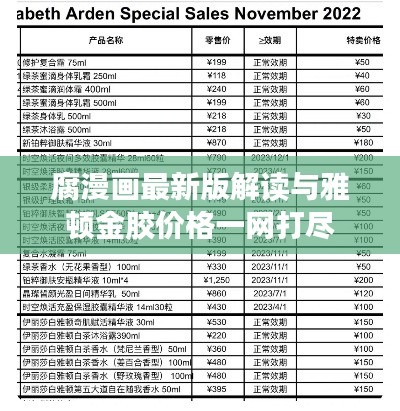 腐漫画最新版与雅顿金胶价格是当前流行文化与现代消费领域中的两大主题,下面将对这两个主题进行基础性与延展性的全面释义。