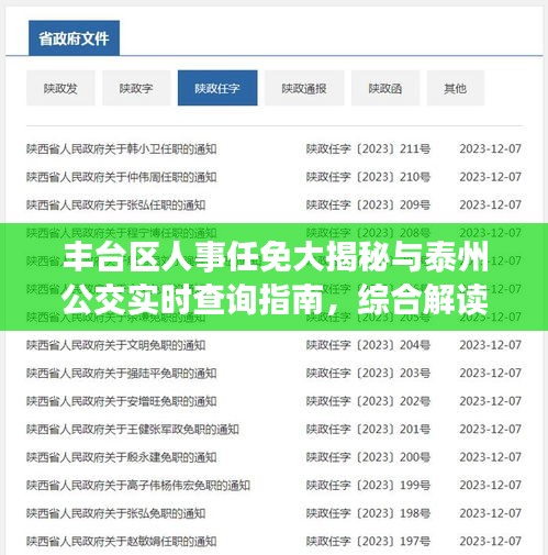 丰台区的人事任免动态以及泰州公交线路的实时查询成为了公众关注的焦点,这两个事件看似没有直接关联,但背后都涉及到公共服务与管理层面的变革,对于居民生活和企业运营均产生一定的影响。