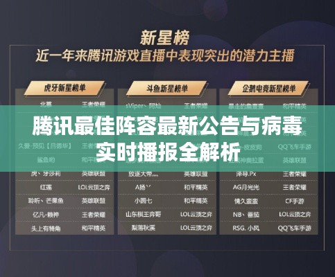 “最佳阵容最新公告”和“腾讯病毒实时播报”这两个主题具有重要的现实意义和应用价值,在实际应用中需要关注其真实性和准确性同时加强管理和监管以防范虚假宣传的风险。