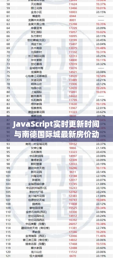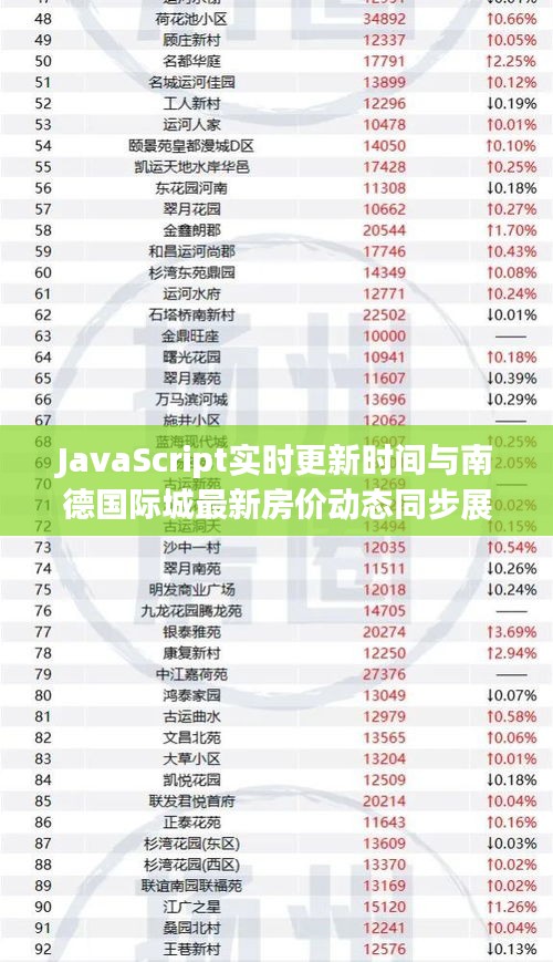 随着科技的快速发展,互联网已成为人们获取信息的重要途径,在日常生活中,我们不仅需要了解实时时间,还需要关注各地的房价动态,本文将介绍如何使用JavaScript实现实时显示时间,并获取南德国际城的最新房价信息。