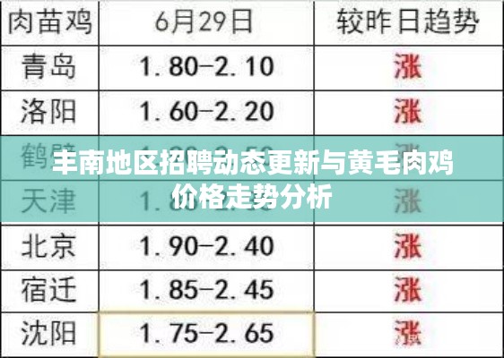 随着经济的繁荣和行业的发展,丰南地区的人才市场持续活跃,各类招聘信息层出不穷,农业产业中的黄毛肉鸡价格也是广大农户和求职者关注的焦点,本文将结合“丰南半天班最新招聘”与“黄毛肉鸡价格”两个关键词,为大家带来相关资讯。