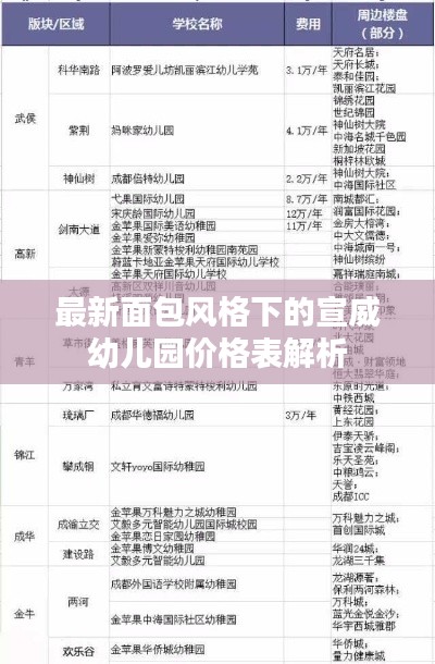 随着教育行业的快速发展,幼儿园教育越来越受到家长们的重视,宣威幼儿园作为其中的一员,其价格表自然成为家长们关注的焦点之一,最新面包风格下的宣威幼儿园价格表,指的是在当前流行的新型教育理念及装修风格下,宣威幼儿园所公布的收费标准及价格明细表,这种风格强调创新、时尚与舒适,旨在为孩子提供一个现代化的学前教育环境。