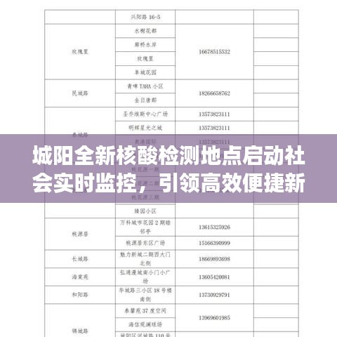 【城阳新闻】随着疫情防控形势的不断变化,城阳区近期更新了核酸检测地点,并启用了社会实时监控系统,为市民提供更加便捷、安全的检测服务,这一新举措的实施背景、产品亮点、市场反响以及对未来的展望,本文一一为您解析。