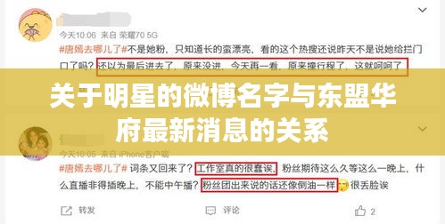 随着社交媒体的普及,明星的微博名字成为了公众关注的焦点之一,而与此同时,房地产项目如东盟华府也在社交媒体上积极推广其最新消息,当这两者结合时,便产生了一系列关于明星与房地产项目的互动与关联,本文将重点阐述明星的微博名字与东盟华府最新消息在特定语境下的关系,并深入分析其中的内涵、专家解读及协同落实的建议,同时警示虚假宣传的风险点。