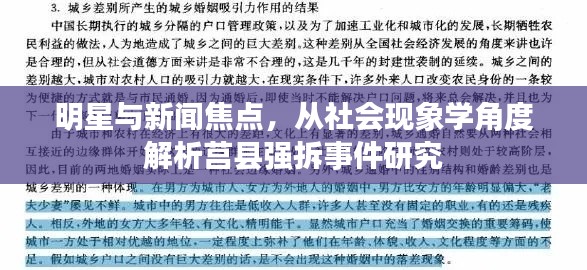 莒县发生了一起新闻强拆事件,该事件迅速成为公众关注的焦点,本文将结合该事件,分析明星、新星、巨星等娱乐产业代表人物在其中的角色和影响。