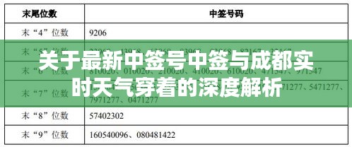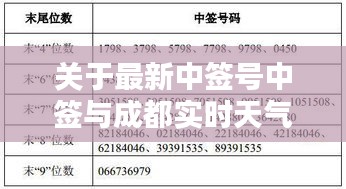 “最新中签号中签”与“成都实时天气穿着”虽然看似是两个独立的话题,但实则有着紧密的联系,在关注中签信息的同时,我们也需要关注实时的天气变化,根据天气情况选择合适的穿着,面对各种宣传信息,我们需保持警惕,理性对待,避免陷入虚假宣传的陷阱。