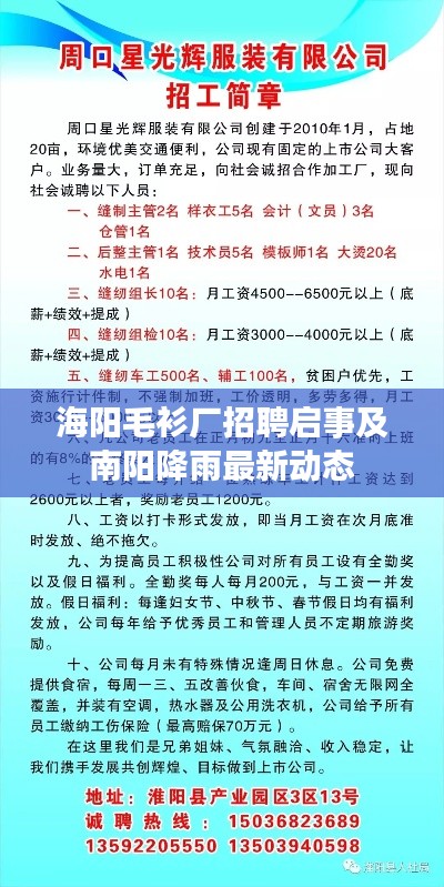 无论是寻找工作的朋友,还是关心天气变化的市民,我们都希望这篇文章能为您提供有价值的信息,海阳毛衫厂诚邀您的加入,让我们共同创造美好的未来,也希望大家关注天气的变化,做好生活和工作的安排。