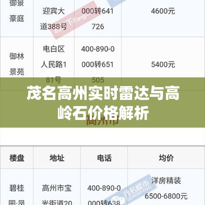 茂名高州实时雷达对于当地气象监测和防范自然灾害具有重要意义,而高岭石价格则受多种因素影响,存在波动,公众和企业需要提高警惕,正确解读信息,防范风险。